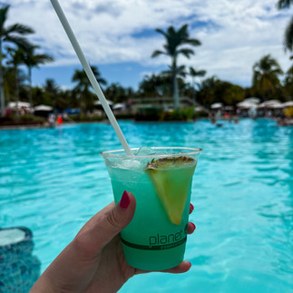 We headed straight to the beach where we found some lounge chairs under an umbrella. This beach was not as pretty as Cozumel, and the sand was rough and rocky. We opted to lounging and reading but did not stay long as the weather started to turn and the winds increased. We packed up our belongings and headed to the shopping area. We shopped around then headed to the pool area as the weather had calmed. We spent our remaining time swimming in the large pool, having a bite to eat and a drink at the swim up bar, and lounging poolside. After a day of sun and swim, we headed back to the boat.