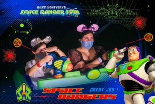 After we were satisfied with our photos, we went to Fantasyland. We rode on Mad Tea Party, which I got dizzy on. I was disappointed that I got dizzy and I do not know if I should contribute this to old age or to a busy day. Next, we went into Tomorrowland where we went on PeopleMover and Buzz Lightyear's Space Ranger Spin. We also saw a show at Monsters, Inc. Laugh Floor, which is a personal favorite of mine.