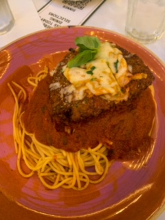 After our brief time in Tomorrowland, we met up with my friends Kayla and Hannah. We all headed down Main Street, U.S.A. together to go to our dinner reservations at Tony's Town Square Restaurant. Even though we had a reservation, it took about 30 minutes for us to be sat. When we finally were sat, we were served bread and oil. We then ordered Fried Mozzarella (herb-marinated fresh mozzarella with creamy tomato sauce) as our shared antipasti for $12.00. The fried mozzarella was very delicious! I enjoyed dipping the complimentary bread into the creamy tomato sauce from the fried mozzarella. For dinner my sister ordered the Scampi Pasta (freshly made linguine pasta, shrimp, mussels, spinach, tomatoes, and onions in herb-butter sauce) for $27.00. She especially liked the sauce and thought that it was worth the price. For dinner my friend Hannah ordered the Chicken Parmigiana (lightly-breaded chicken breast with provolone and Tony's marinara sauce over spaghetti) for $26.00. She thought that her meal was really good and worth the price. She did also note that she was extremely hungry and that she enjoyed the bread. For dinner my friend Kayla ordered the Fettuccine Alfredo with Grilled Shrimp for $27.00. She said that she has had better pasta and bread before, she did enjoy the shrimp but she would not come to eat here again. For dinner I ordered the Fettuccine Alfredo with Grilled Shrimp for $27.00 and a Wine Cocktail (Bellini by canella with prosecco, peach juice, and drops of wild raspberry) for $11.00. I thought that my meal was slightly better than Olive Garden even though it was served a little cold. I also thought that my meal was not seasoned enough. I did however really enjoy my wine cocktail, especially since it had fruit pieces in it. Overall, I am happy that I tried a new restaurant but it was not my first pick of restaurants to go to. I would not mind coming back and giving Tony's Town Square Restaurant another try but it would not be my first pick and I do not think that it is anything special. Perhaps your thoughts may be different, I hope that you will give Tony's a chance to find out for yourself if you enjoy the restaurant.